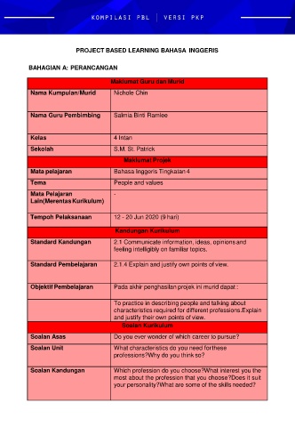 PROJECT BASED LEARNING BAHASA INGGERIS