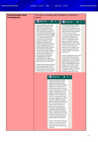 Pembentangan Hasil The voice recording and transcription of student’s Pembelajaran speech. 255