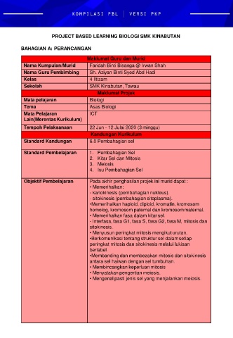 PROJECT BASED LEARNING BIOLOGI SMK KINABUTAN