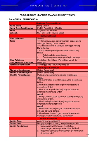PROJECT BASED LEARNING SEJARAH SM HOLY TRINITY