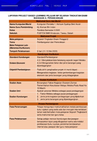 LAPORAN PROJECT BASED LEARNING PELAJAR MP SEJARAH TINGKATAN ENAM