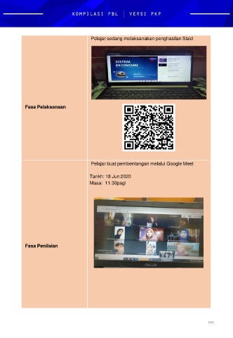 Pelajar sedang melaksanakan penghasilan Slaid Fasa Pelaksanaan Pelajar buat pembentangan melalui Google Meet Tarikh: 18 Jun2020 Masa: 11.30pagi Fasa Penilaian 340