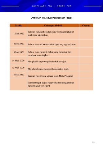 LAMPIRAN IV: Jadual Pelaksanaan Projek