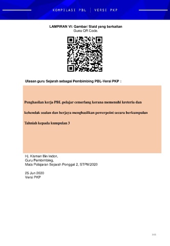 Ulasan guru Sejarah sebagai Pembimbing PBL-Versi PKP :