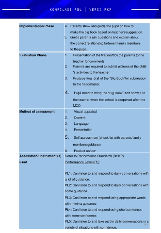 Implementation Phase 4. Parents show and guide the pupil on how to
