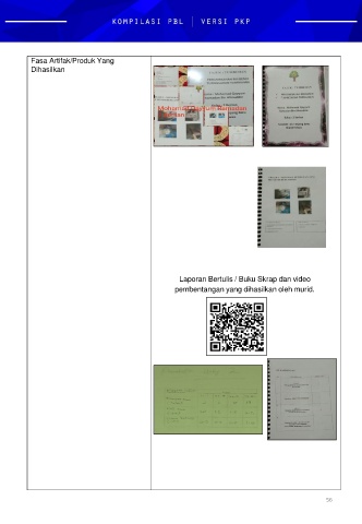 Fasa Artifak/Produk Yang Dihasilkan Laporan Bertulis / Buku Skrap dan video pembentangan yang dihasilkan oleh murid. 56
