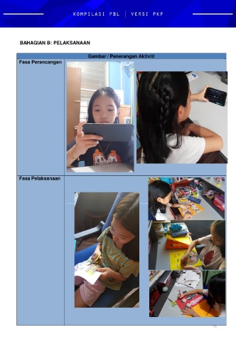 BAHAGIAN B: PELAKSANAAN Gambar / Penerangan Aktiviti Fasa Perancangan Fasa Pelaksanaan 73