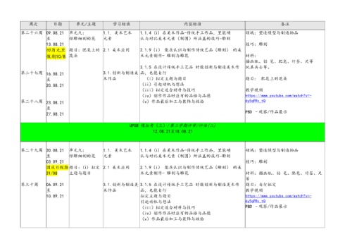第二十六周 09.08.21 单元九: 1.1. 美术艺术 1.1.4 (i) 在美术作品-传统手工作品,里能确 领域:塑造模型与制造物品
