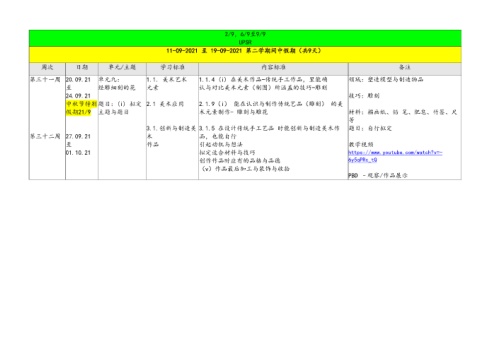 第三十一周 20.09.21 单元九: 1.1. 美术艺术 1.1.4 (i) 在美术作品-传统手工作品,里能确 领域:塑造模型与制造物品