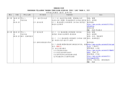 RANCANGAN PELAJARAN TAHUNAN PENDIDIKAN KESENIAN (SENI) SJKC TAHUN 4,2021