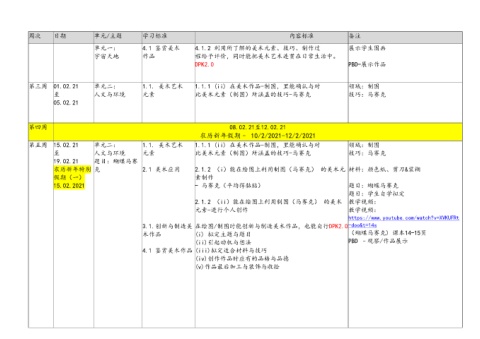 周次 日期 单元/主题 学习标准 内容标准 备注