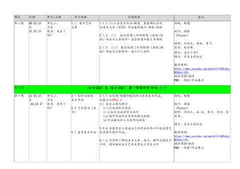 周次 日期 单元/主题 学习标准 内容标准 备注