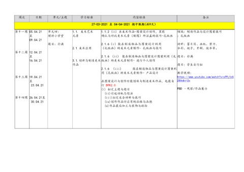 第十一周 05.04.21 单元四: 1.1. 美术艺术 1.1.2 (ii) 在美术作品-图案设计创作,里能 领域:制造作品与设计图案技巧