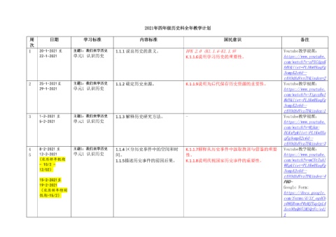 1 20-1-2021 至 主题1:我们来学历史 1.1.1 说出历史的意义。 DPK 2.0 (K1.1.6-K1.1.9) Youtube教学视频: