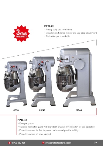 • Heavy duty planetary drive • Stainless steel bowl MP20–60