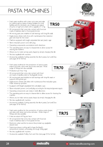 • Allows you to make various pasta shapes by simply changing the die Cutting Assembly for TR50 LPC01
