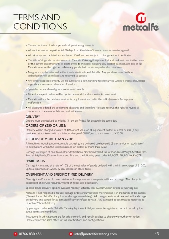 • Parts purchased or supplied for the repair of Metcalfe equipment Delivery will be charged at a rate of 10% of net value on all equipment orders of £250 or less (2 day