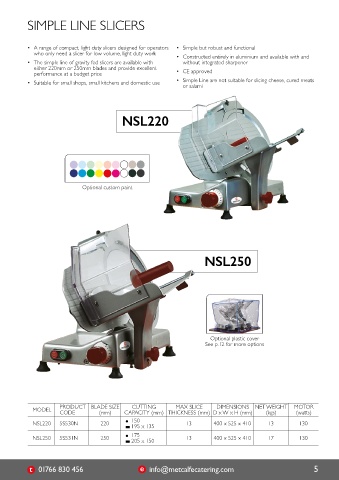 peelers and chippers. Using this long history of expertise, knowledge and skill all Metcalfe slicers are • Suitable for small shops, small kitchens and domestic use • Simple Line are not suitable for slicing cheese, cured meats