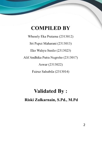 COMPILED BY Whesely Eka Pratama (2313012) Sri Puput Maharani (2313013) Eko Wahyu Susilo (2313023) Alif Andhika Putra Nugroho (2313017) Aswar (2313022) Fairuz Salsabila (2313014) Validated By : Riski Zulkarnain, S.Pd., M.Pd 2