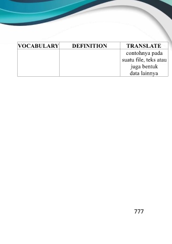 VOCABULARY DEFINITION TRANSLATE contohnya pada suatu file, teks atau juga bentuk data lainnya 777