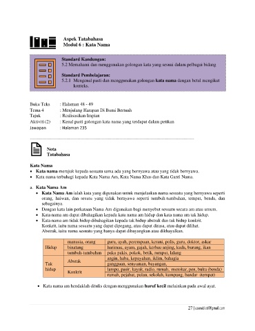 5.2.1 Mengenal pasti dan menggunakan golongan kata nama dengan betul mengikut