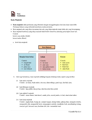 b. Dari segi bentuknya, kata majmuk terbahagi kepada beberapa kelas seperti yang berikut:
