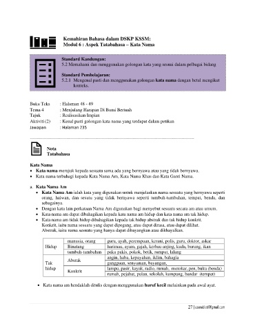 Modul 6 : Aspek Tatabahasa – Kata Nama