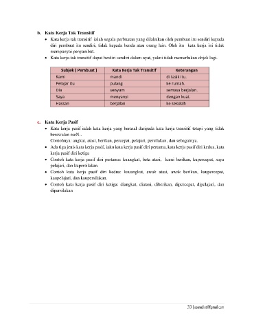 b. Kata Kerja Tak Transitif