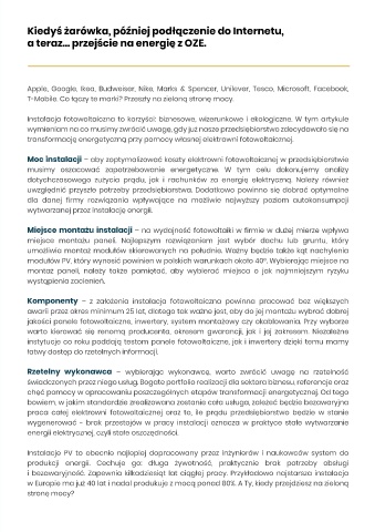 Instalacja fotowoltaiczna to korzyści: biznesowe, wizerunkowe i ekologiczne. W tym artykule