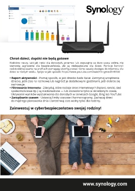 pomocą routera Synology. • Raport aktywności - Poznaj sposób, w jaki dziecko bada świat. Zatrzymaj urządzenia