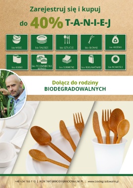 Zarejestruj się i kupuj 40% do T-A-N-I-E-J Dołącz do rodziny BIODEGRADOWALNYCH HURTOWNIA / SKLEP STACJONARNY +48 604 166 110 | KONTAKT@BIODEGRADOWALNI.PL | www.biodegradowalni.pl ul. JULIANOWSKA 37 A, 05-500 PIASECZNO k. Warszawy
