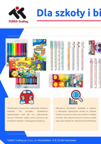 Dla szkoły i biura Firma Tadeo Trading powstała w 1993roku i od tego czasu zajmuje się sprzedażą