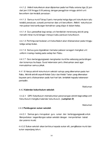 4.4.1.2 Aktiviti kokurikulum akan dijalankan pada hari Rabu selama tiga (3) jam