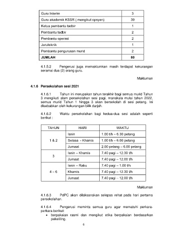 4.1.6.2 Waktu persekolahan bagi kedua-dua sesi adalah seperti