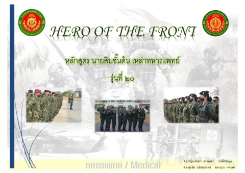 ้ ์ หลักสูตร นายสิบชั้นตน เหล่าทหารแพทย รนที่ ๒๐ ุ่ ้ ิ ส.อ.ศุภชัย วณชยธนากร ออกแบบ - ตกแต่ง ส.อ.หญง อัจฉรา ดวงทุ่งสา บันทึกขอมูล ิ