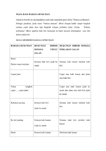 semasa cepat jalan atau tiga langkah semasa perlahan jalan. Setiap ”bahasa