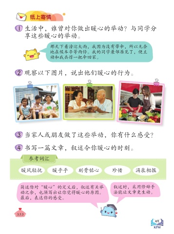 1 生活中,谁曾对你做出暖心的举动?与同学分
