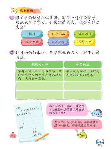 1 课文中的妈妈用心良苦,写了一封信给孩子,