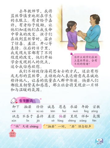 或无形的蓝丝带,主动地向人表达谢意或真诚地