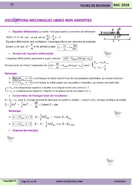 v V max ; x 0 c.à.d lorsque le solide passe par sa position d’équilibre, sa vitesse est maximale.