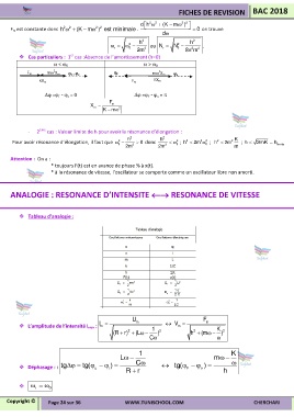 ANALOGIE : RESONANCE D’INTENSITE RESONANCE DE VITESSE