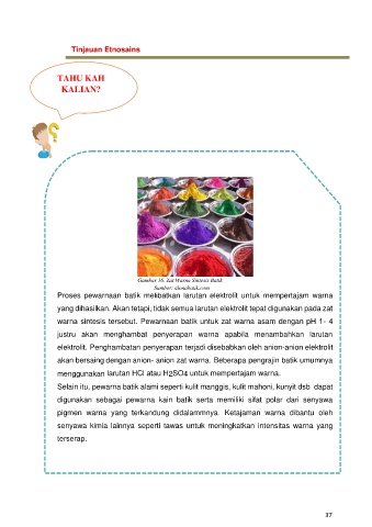 Proses pewarnaan batik melibatkan larutan elektrolit untuk mempertajam warna