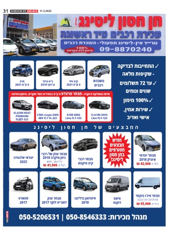 חדש! במחלקת היוקרה -מבחר מרצדס 0ק"מ במחירים חסרי תקדים ,מימון/החלפה א עד 72תשלומים