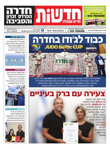 ח0למכ5והשיס)תוחי'Bת8ה(10 2 14מופץ בחדרה ,גבעת אולגה ,בית אליעזר ,אור עקיבא ,קיסריה ,אליכין וישובי עמק חפר (כפר הרוא"ה ,אחיטוב ,חרב לאת ,המעפיל ,חיבת ציון ,גבעת חיים איחוד ומאוחד ,עין שמר ועוד) .פרדס חנה-כרכור .זכרון יעקב ,בנימינה ,גבעת עדה ,ישובי אלונה ,ישובי חוף הכרמל
