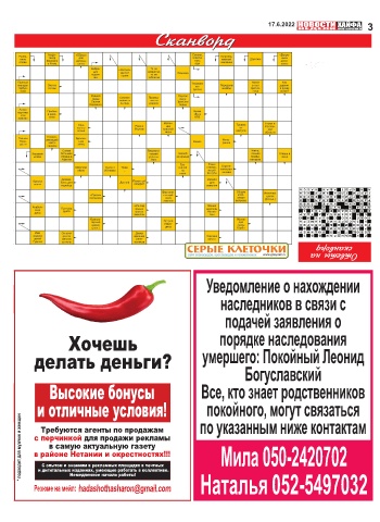 Резюме на мейл: hadashothasharon@gmail.com