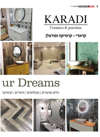 17.6.2022 6 קראדי -קרמיקה ופורצלן ur Dreams כלים סניטרים | מקלחונים | חיפויים | קרמיקה