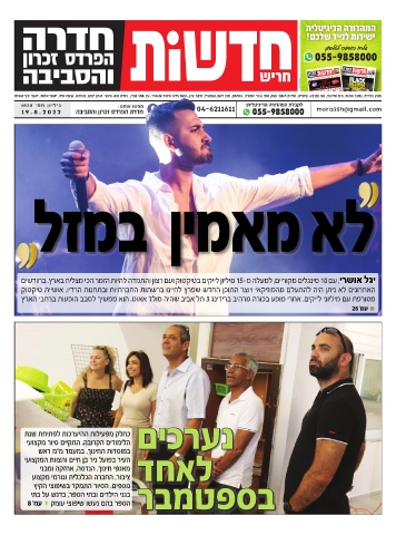 ח0למכ5והשיס)תוחי'Bת8ה(10 2 14מופץ בחדרה ,גבעת אולגה ,בית אליעזר ,אור עקיבא ,קיסריה ,אליכין וישובי עמק חפר (כפר הרוא"ה ,אחיטוב ,חרב לאת ,המעפיל ,חיבת ציון ,גבעת חיים איחוד ומאוחד ,עין שמר ועוד) .פרדס חנה-כרכור .זכרון יעקב ,בנימינה ,גבעת עדה ,ישובי אלונה ,ישובי חוף הכרמל