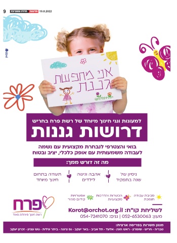 למעונות וגני חינוך מיוחד של רשת פרח בחרישדרושות גננות