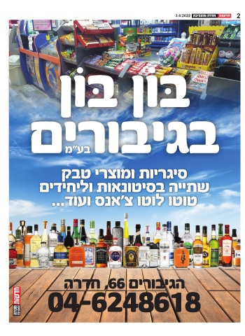 3.6.2022 2 בון בון בגיבו בער"מים סיגריות ומוצרי טבק שתייה בסיטונאות וליחידים טוטו לוטו צ'אנס ועוד... 8ה1גיב6ורי8ם6,2664חד-רה04