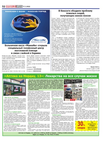 Больничная касса «Маккаби» открыла специ- языках: иврите, русском и украинском. Кроме дом Израиль» д-р Элина Бардач-Ялова. На засе- онеров. Общая сумма помощи пожилым людям